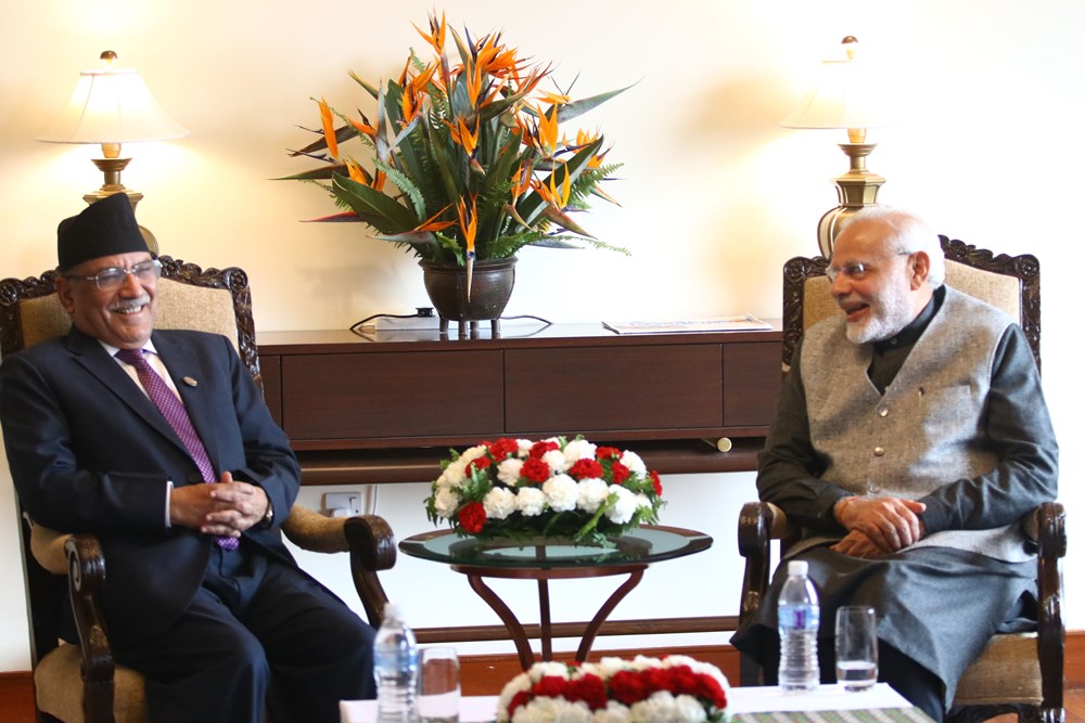 ‘सीमा क्षेत्रमा नेपालीले समस्या भोगेका छन्, त्यसलाई समाधानको पहल गरिदिनुपर्यो भनेर मैले भारतीय प्रधानमन्त्रीलाई आग्रह गरेको छु। उहाँले सकारात्मक जवाफ दिनु भएको छ,’ भेटवार्तापछि प्रचण्डले भने।