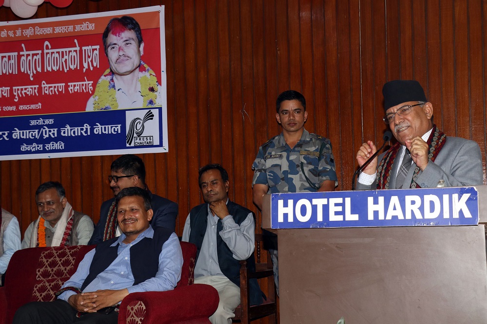 प्रेस स्वतन्त्रता र पत्रकारको हक हितका लागि आफूहरुले सबैभन्दा अग्रस्थानमा रहेर काम गर्ने र जनताको सूचनाप्राप्त गर्ने अधिकारलाई सम्मान गरिने अध्यक्ष दाहालको भनाइ थियो।