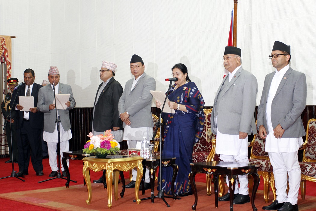 शीतल निवासस्थित राष्ट्रपतिको कार्यालयमा आयोजित समारोहमा राष्ट्रपति विद्यादेवी भण्डारीले प्रधानमन्त्री केपी शर्मा ओलीको उपस्थितिमा उनीहरुलाई पद तथा गोपनीयताको शपथ गराएका हुन्। समारोहमा उपराष्ट्रपति, सभामुख, राष्ट्रियसभाका अध्यक्षलगायतको उपस्थिति थियो।