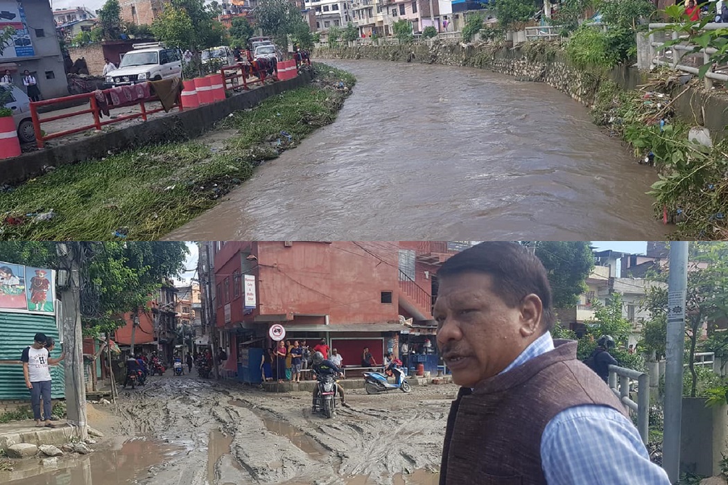 त्यस्तै गए रातिको अविरल वर्षाले निर्माणाधीन बिजुली बजारको पुल थुनिँदा अनामनगर, बिजुली बजारलगायका बस्तीमा पानी पसेपछि त्यस क्षेत्रका बासिन्दा प्रभावित भएका हुन् । घर, पसल, विद्यालय, होटल, पब्लिकेशनलगायतमा पानी छिरेको थियो।
