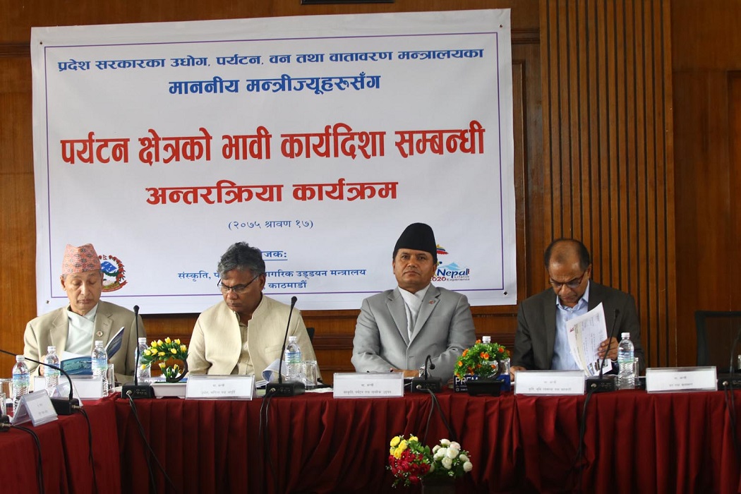 उद्योग, वाणिज्य तथा आपूर्तिमन्त्री मातृका यादवले पर्यटन क्षेत्रलाई उद्योगका रुपमा विकास गर्न तीनवटै तहको सरकार एकजुट भएर पर्यटनको माध्यमबाट देशलाई समृद्धिको दिशातर्फ लैजानुपर्ने खाँचो औँल्याए। पर्यटनमा आतिथ्य संस्कार, सुरक्षाको व्यवस्थापन तथा सेवा गुणस्तरलाई ध्यान दिइनुपर्नेमा उनको जोड थियो।