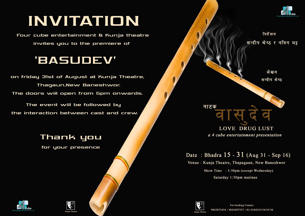 भदौ ३१ गतेसम्म मञ्चन हुने नाटक बासुदेवको निर्माण फोर क्युब इन्टरटेमेन्ट प्रालिले गरेको हो।