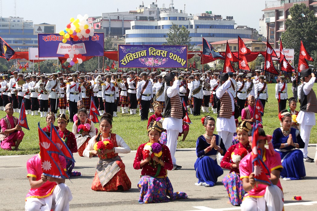 कर्यक्रममा ‘संविधान दिवस २०७५’ लेखिएको ब्यानर अङ्कित नेपाली सेनाको चार वटा हेलिकोप्टरमा पुष्पवृष्टि गरिएको थियो भने नेपाली सेना, नेपाल प्रहारी, सशस्त्र प्रहरी बल, नेपाल स्काउटका तर्फबाट मार्चपास तथा सांस्कृतिक प्रस्तुति गरिएको थियो । काठमाडौँ र ललितपुर महानगरपालिका तथा उपत्यकास्थित स्थानीय तहबाट झाँकी प्रस्तुति गरिएको थियो भने राष्ट्रिय भावनाका गीत प्रस्तुत गरिएको थियो ।
