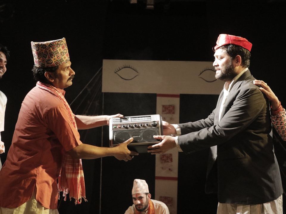 पहाडी खस र मिथिला संस्कृतिको संयोजनले नाटकलाई अन्तरआञ्चलिक विशेषता प्रदान गरेको छ। नाटकमा नेपाली र मैथिली दुवै भाषा प्रयोग गरिएको छ। निर्देशक कामतसहित सुनिता घिमिरे, कौशिला कामत, मिलन नेपाली, विकास पराजुली, राजेश ठाकुर, भरत कार्की, सञ्जय गुप्ता, आदित्य मिश्रा, अमृता श्रेष्ठ, अमृत स्वाँर र शंकर पोखरेलले अभिनय गरेका छन्।