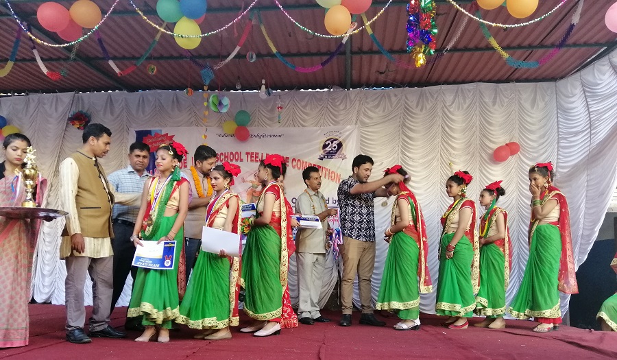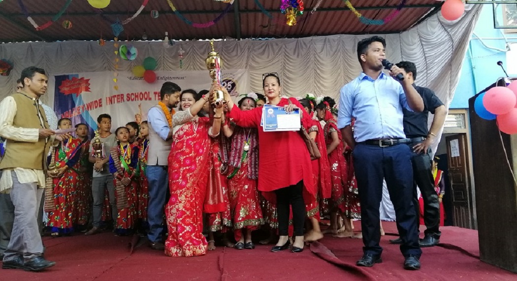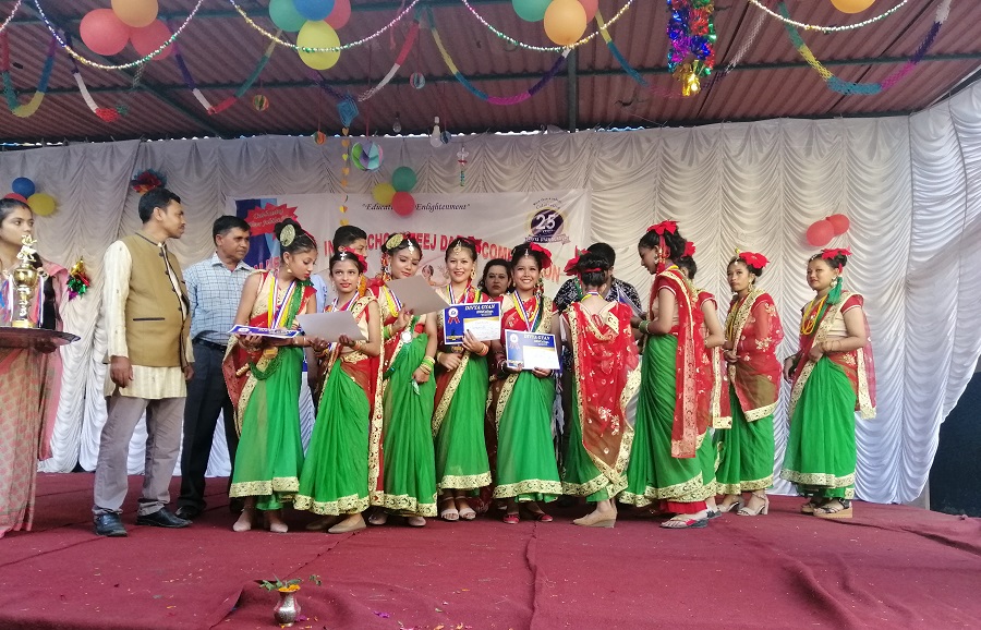 काठमाडौं – उपत्यका स्तरीय अन्तरविद्यालय तीज नृत्य प्रतियोगिताको उपाधि जेम्स् स्कूलले जितेको छ। दिव्यज्ञान उच्च माविको आयोजनामा सम्पन्न नृत्य प्रतियोगितामा वनस्थलीस्थित जेम्स् स्कूलले एक सय पूर्णाङ्कमा ८५ अंक हासिल गरी उपाधि जितेको हो।