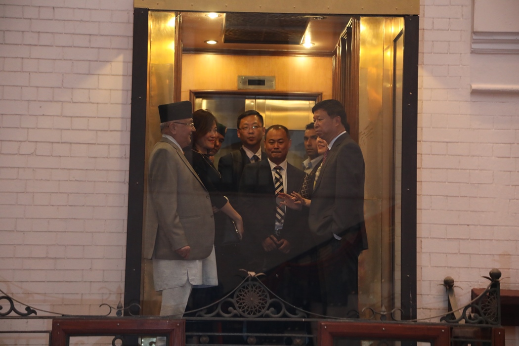 प्रधानमन्त्री ओलीसँग नेता ताओ नेतृत्वको प्रतिनिधि मण्डलले साेमबार दिउँसो प्रधानमन्त्री निवास, बालुवाटारमा भेटवार्ता गरेको थियो। प्रशिक्षणमा सम्बोधन र चिनियाँ राष्ट्रपतिको भ्रमणको तयारीका लागि चिनियाँ कम्युनिष्ट पार्टीका नेता ताओ नेतृत्वमा १४ सदस्यीय चिनियाँ टोली हाल काठमाडौँमा छ।