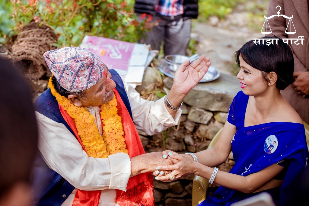 साझाले गल्ली गल्ली चोक चोकमा पार्टीको झण्डा, तुल, ब्यानर राखेर प्रचार प्रसार गरिरहेको छ। साझाका नेताहरु अहिले आमसभा र घरदैलोमार्फत मतदातालाई आफ्नो पक्षमा मतदान गर्न आग्रह गर्दै हिँडिरहेका छन्।