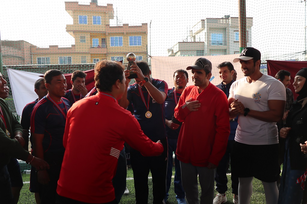 कतार राष्ट्रिय खेलकुद दिवसमा फुटबल, ब्रिटिश राजदूताबासले उचाल्यो विजेताको ट्रफी