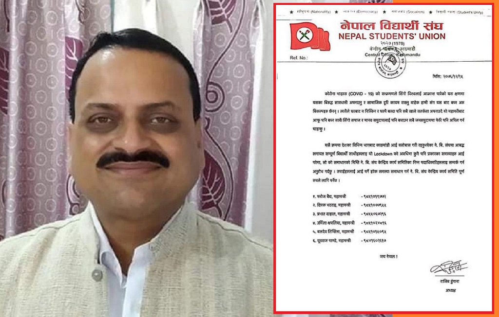 घरमै सुरक्षित बसौं, आवश्यक परे सहयोग आदानप्रदान गरौं: नेपाल विद्यार्थी संघ