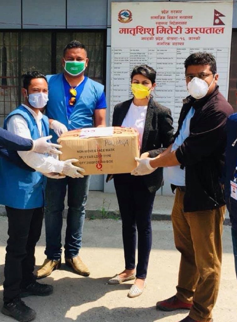 गण्डकी प्रदेशका मध्यबिन्दु अस्पताल, कावासोती, प्राथमिक स्वास्थ्यचौकी दुम्कौली नवलपुर, पिताउन्जी स्वास्थ्य केन्द्र नवलपुर, सहज अस्पताल गैंडाकोट, मातृशिशु मितेरी अस्पताल कास्की, पर्वत जिल्ला अस्पताल, बागलुङ जिल्ला अस्पताल र गोरखा जिल्ला अस्पतालमा सुरक्षा सामग्री वितरण गरिएका छ।