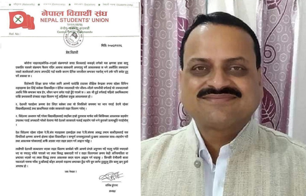 नेवि संघ अध्यक्ष राजीव ढुंगानाले प्रेस विज्ञप्ति जारी गरी देशभरि पढाइका क्रममा डेरा लिएर बसेका विद्यार्थीलाई राहत प्रदान गर्न सरकारसँग माग गरेका हुन्।