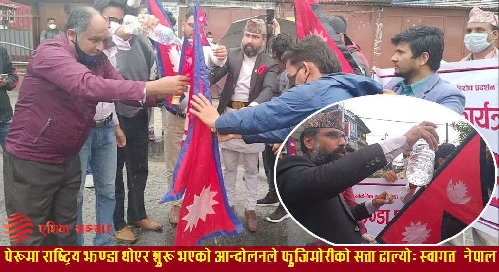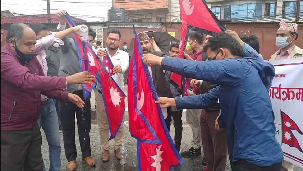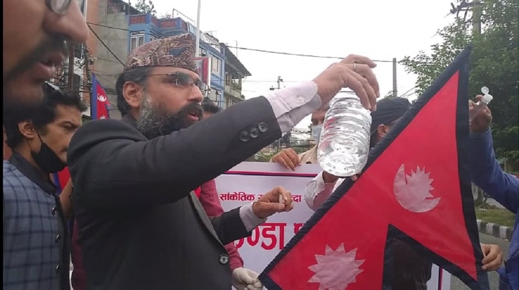 राष्ट्रिय झण्डा बिटुलो बनाएको दावी गर्दै शुद्धीकरणका लागि राष्ट्रिय झण्डा धोएर सांकेतिक विरोध प्रदर्शन गरिएको अभियान संयोजक स्वागत नेपालले जानकारी दिएका हुन्।