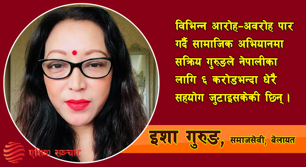 भोला लामिछाने, लण्डन, २९ असार – बेलायतमा संघर्षलाई उत्साहमा बदलेर नेपाल र नेपालीको सुखदुःखमा साथ दिने सामाजिक अभियन्ताको संख्या निकै थोरै छन्। आफ्नो काममा समर्पित हुँदै नेपालीलाई सहयोग गर्ने उदाहरणीय अभियन्ता हुन् इशा गुरुङ।