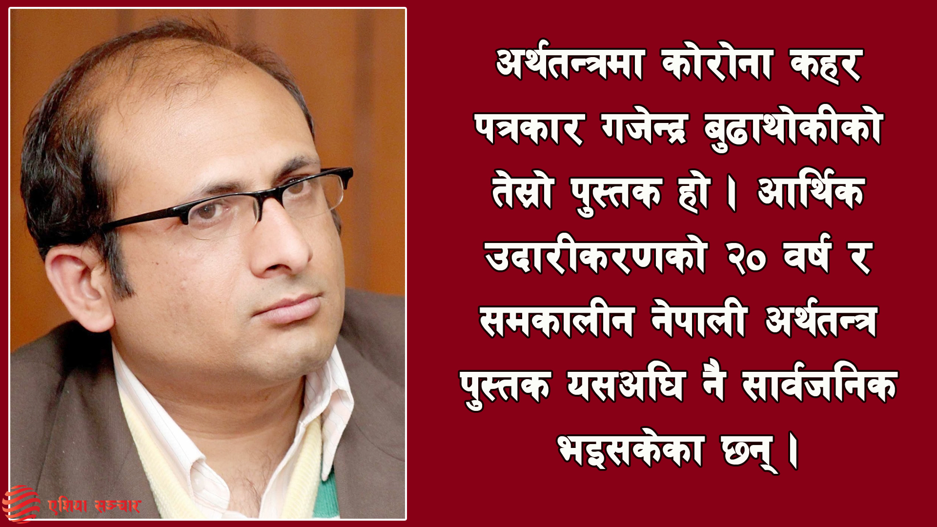 काठमाडौं, २९ साउन – वरिष्ठ पत्रकार गजेन्द्र बुढाथोकीको पुस्तक ‘अर्थतन्त्रमा कोरोना कहर’ सार्वजनिक भएको छ। वरिष्ठ आर्थिक पत्रकार बुढाथोकीको पुस्तक अनलाइनमार्फत सार्वजनिक भएको हो।