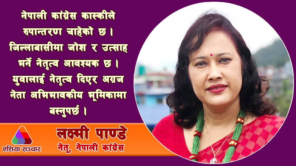 एशिया सञ्चारसँगको कुराकानीमा नेतृ पाण्डेले कास्की कांग्रेसको समग्र रुपान्तरण, नेतृत्व परिवर्तन र योग्य टिम निर्माण गरी देशलाई नै उदाहरण पेश गर्नुपर्ने बताएकी हुन्।