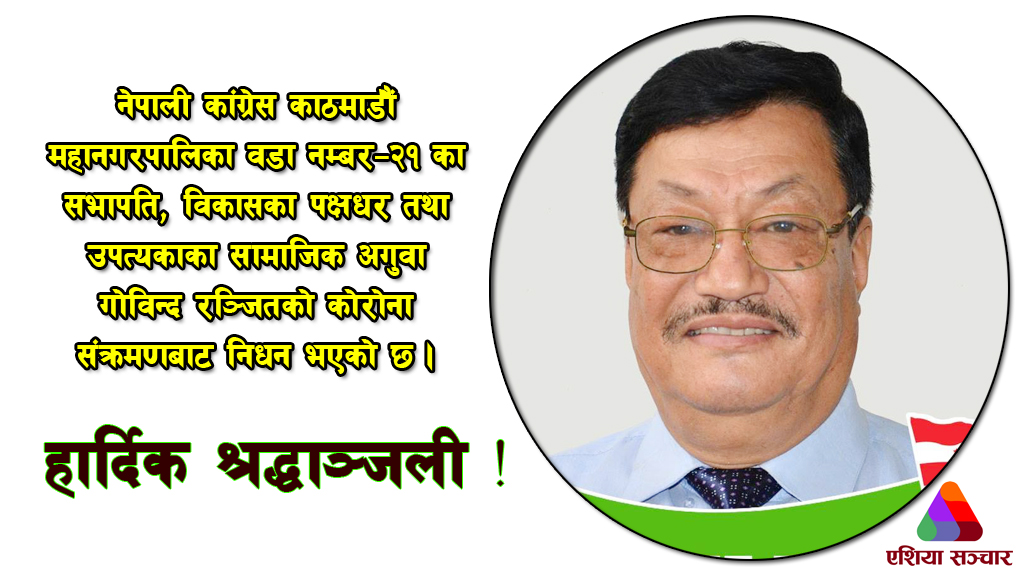 काठमाडौं, ९ भदौ – नेपाली कांग्रेस काठमाडौं महानगरपालिका वडा नम्बर–२१ का सभापति गोविन्द रञ्जितको कोरोना संक्रमणका कारण निधन भएको छ।