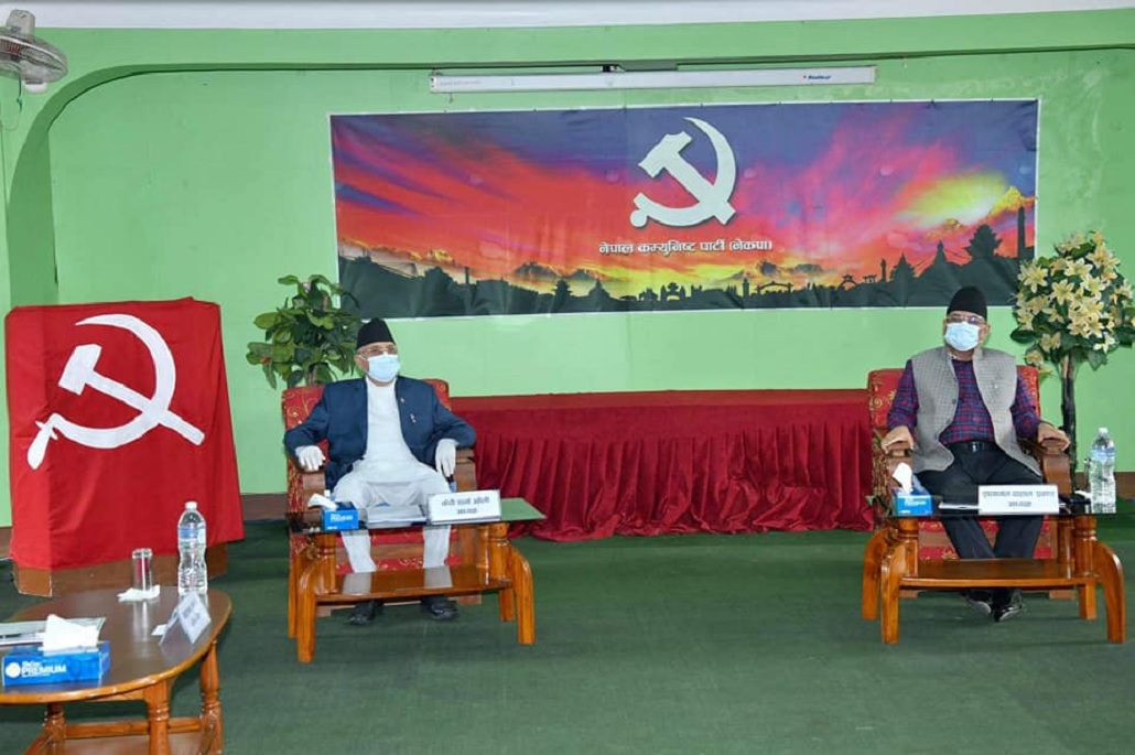 अध्यक्षद्वयबीचको भेट प्रधानमन्त्री निवास बालुवाटारमा जारी छ।