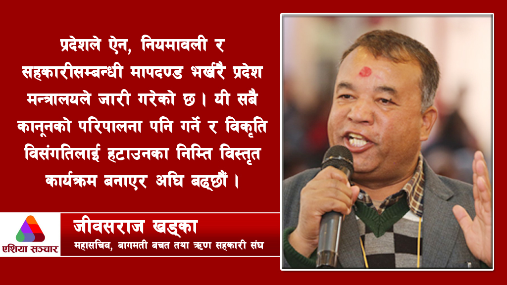 –अहिले चाहिँ कतिपय राजधानी केन्द्रित पनि भएको ठूल्ठूला शहरहरू पनि भएको कारणले गर्दा केही–केही विकृति पनि छन् सहकारी संस्थाभित्र । त्यो देखिएको पनि छ, पत्रपत्रिकामा पनि आएको छ, बाहिर पनि आएको छ । केही अप्ठ्यारो र असहज परिस्थिति पनि छ, यस्तो अवस्थामा हामी छाता संघ जो हामी भर्खर–भर्खर गठन भएको प्रदेश सहकारी संघ छ । हामी अब सहकारी विभाग र मन्त्रालयसँग समन्वय गर्छौं र कम्तिमा पनि अहिले पछिल्लो चरणमा बचत तथा ऋण सहकारी संस्था मापदण्ड पनि जारी गरिसकेको छ । प्रदेशले तीन वटै कुरा ऐन पनि गर्यो, नियमावली पनि ग¥यो र एउटा मापदण्ड पनि भर्खरै प्रदेश मन्त्रालयले जारी गरेको छ ।