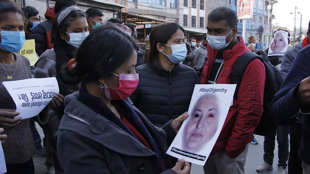 काठमाडौं, ११ पुस – नागरिक समाजका अगुवाहरूले केपी शर्मा ओली नेतृत्वको सरकारको सिफारिसमा राष्ट्रपति विद्यादेवी भण्डारीले गरेको प्रतिनिधिसभा विघटनको विरोधमा प्रर्दशन गरेका छन्।