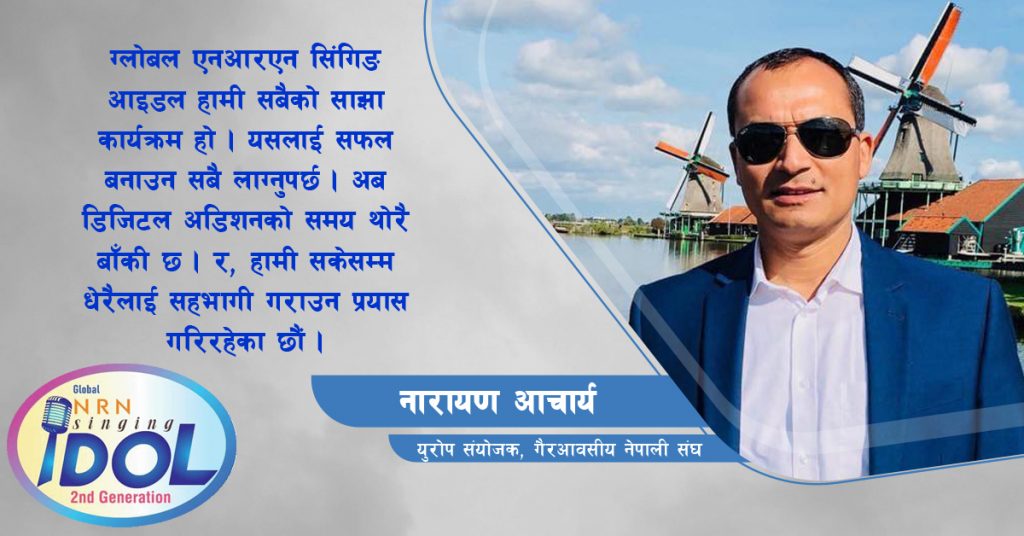 ग्लोबल एनआरएन सिंगिङ आइडलले ती नेपालीलाई आफ्ना पूर्खासँग जोड्न ठूलो योगदान दिने आचार्यले उल्लेख गरेका छन्।