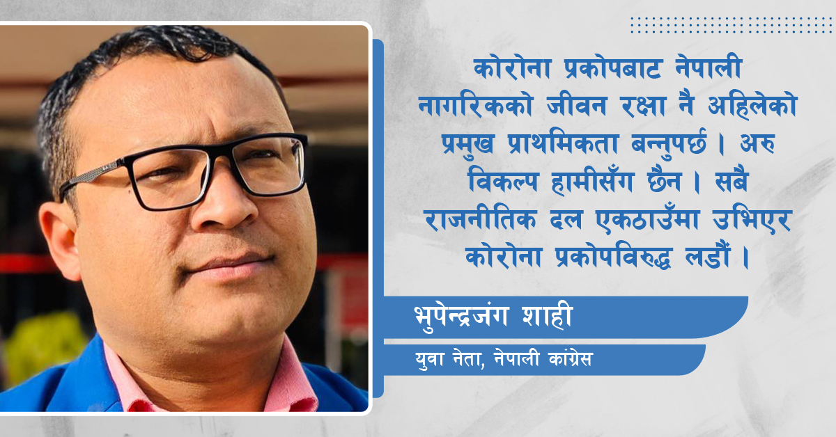 ‘कोरोना प्रकोपबाट नेपाली नागरिकको जीवन रक्षा नै अहिलेको प्रमुख प्राथमिकता बन्नुपर्छ, अरु विकल्प हामीसँग छैन, सबै राजनीतिक दल एकठाउँमा उभिएर कोरोना प्रकोपविरुद्ध लडौं,’ शाहीले भने।