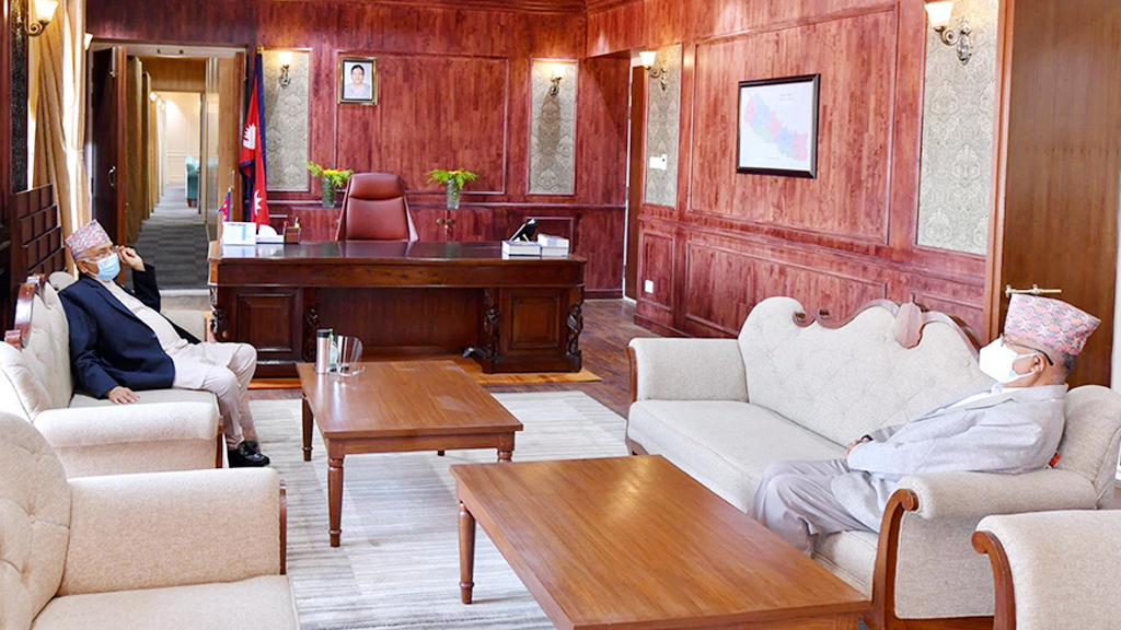 काठमाडौं, २ जेठ – नेकपा एमालेका अध्यक्ष केपी शर्मा ओली र वरिष्ठ नेता माधवकुमार नेपालबीच सिंहदरबारमा वार्ता शुरु भएको छ।