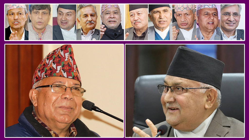 काठमाडौं, १८ जेठ – नेपाल कम्युनिष्ट पार्टी (नेकपा) आफैं फुटको संघारमा थियो। प्रधानमन्त्री केपी शर्मा ओली एकातिर रहँदा पुष्पकमल दाहाल प्रचण्ड, माधवकुमार नेपाल अर्कातिर थिए। त्यसपछि सिर्जित राजनीतिक घटनाक्रम संसद विघटनसम्म पुग्यो।