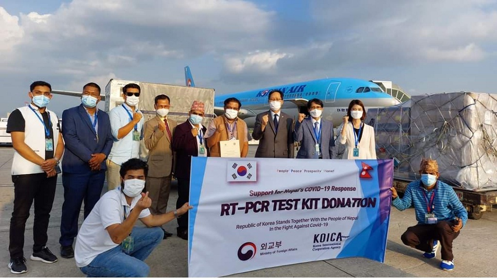 कोरिया गणतन्त्र सरकारले जून ४, २०२१ मा स्वास्थ्य तथा जनसंख्या मन्त्रालयलाई कोरियाको अन्तर्राष्ट्रिय सहयोग एजेन्सी (KOICA) मार्फत दुई लाख अमेरिकी डलरको १७ हजार ७ सय ६० आरटी पिसिआर टेस्ट किटको सेट प्रदान गरेको छ।