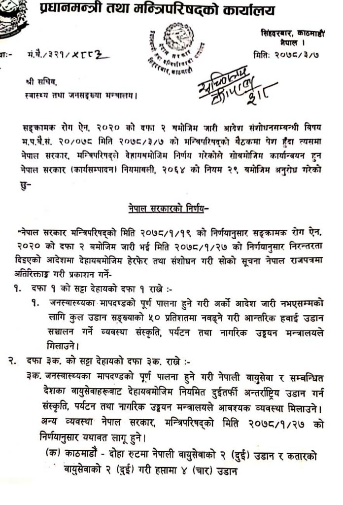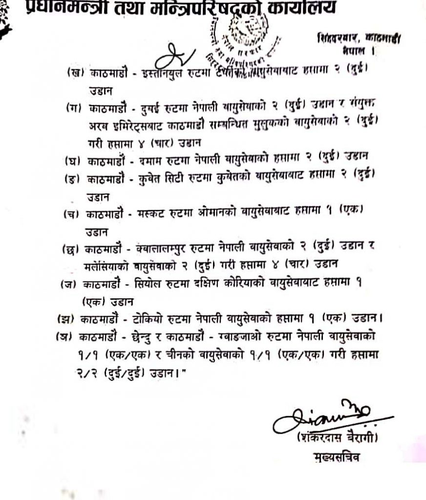 सम्पूर्ण हवाई उडान खोल्ने सरकारको निर्णय, तर यस्तो शर्त (हेनुहोस् सरकारको निर्णय)