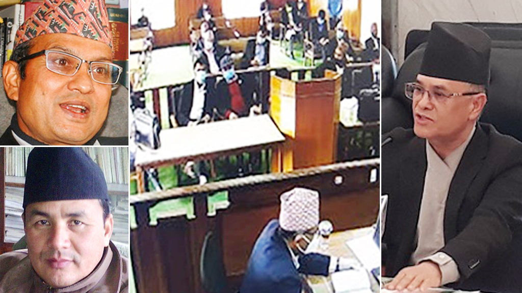 ‘विश्वास गुमाइसकेको व्यक्तिले फेरि दाबी गर्न सक्छ कि सक्दैनरु ७६(५) मा राजनीतिक दलको ह्वीप लाग्छ कि लाग्दैनरु र ७६(५) मा सरकार बनाउँदा पछि के हुन्छ भनेर राष्ट्रपतिले आँकलन गर्न कसरी पाउँछरु भनेर हेर्नुपर्छ,’ बन्दीले बहसका क्रममा भनेका छन्।