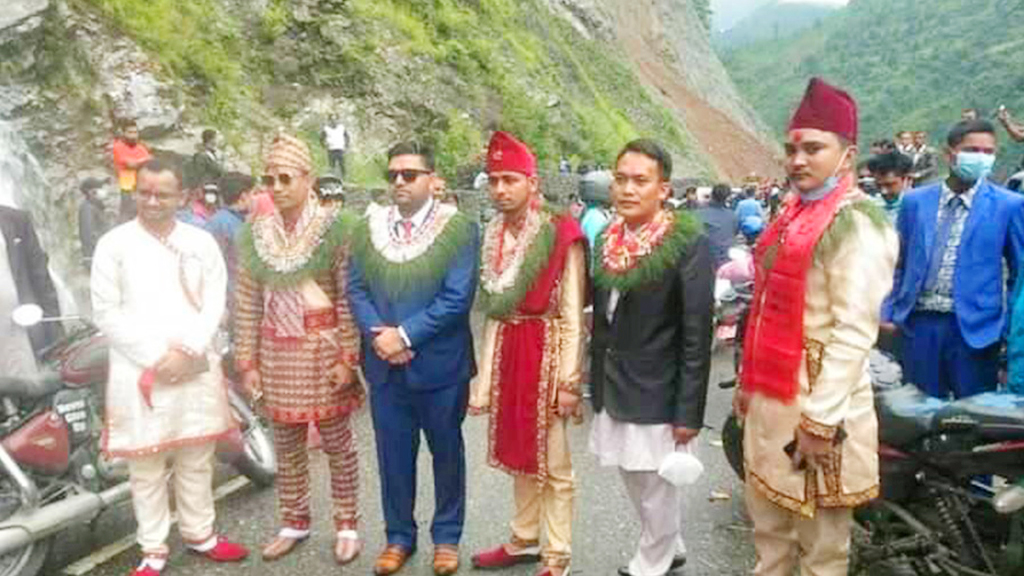 ६ जना बेहुला लहरै बसेर फोटो खिचाए। उता बेहुलीको घरमा बिहेको रमझम चलिरहेकै थियो। तर, सडक सञ्चालनमा नआएपछि बेहुलाहरू रोकिए। चितवन, मकवानपुर र काठमाडौं हिँडेका बिहेका गाडी बीच बाटोमै अलपत्र परेका हुन्।