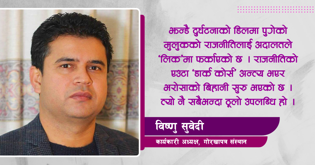 पुस ५ पछिको सात महिना नेपाली राजनीतिको एउटा अत्यासलाग्दो ‘डार्क कोर्र्र्स’ थियो । सर्वोच्च अदालतको परमादेशअनुसार असार २९ मा देउवा प्रधानमन्त्री नियुक्त भएपछि मुलुक एउटा उकुसमुकुसबाट मुक्त भयो । सर्वोच्च अदालतको त्यो फैसला कुनै पात्र, दल वा समूह विशेषको हारजित मात्र थिएन; लोकतन्त्र, न्याय र संविधानको विजय थियो त्यो । संसद् विघटन गरेर चुनाव पनि नगराउने र एउटा डरलाग्दो भ्याकुम उत्पन्न गरी परिवर्तन र संविधानलाई एम्बुसमा पार्ने र मुलुकलाई अस्थिरताको एउटा भयानक शृङ्खलातर्फ धकेल्ने जुन ‘डिजाइन’को सुरसार हुँदै थियो, न्यायालयले बेलामै त्यसलाई निस्तेज तुल्याइदियो । झन्डै दुर्घटनाको डिलमा पुगेको मुलुकको राजनीतिलाई अदालतले ‘लिक’मा फर्काएको छ । राजनीतिको एउटा ‘डार्क कोर्स’ अन्त्य भएर भरोसाको बिहानी सुरु भएको छ । त्यो नै सबैभन्दा ठूलो उपलब्धि हो ।