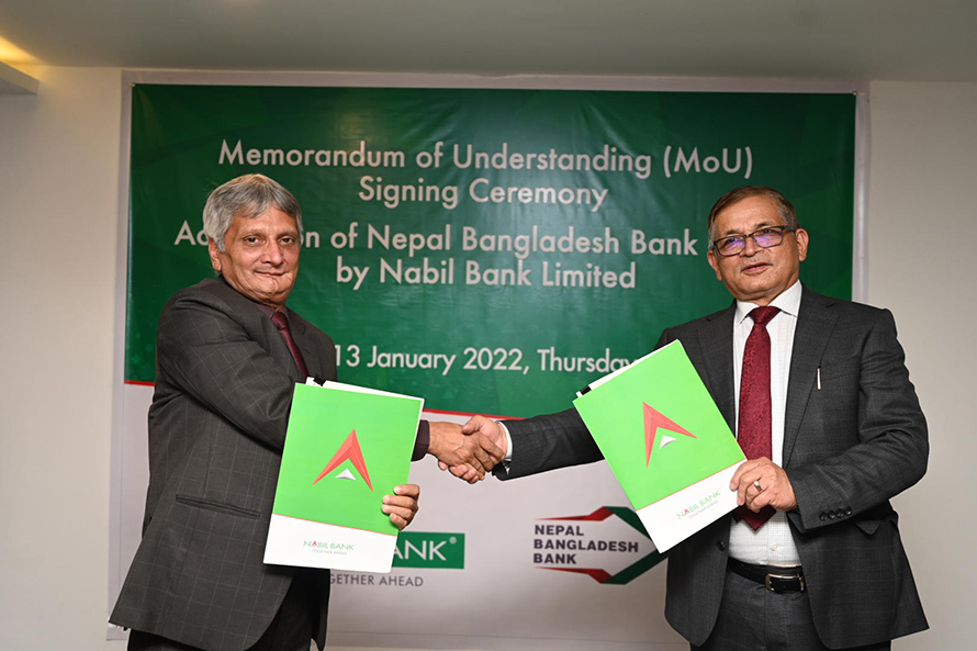 २९ पुस, २०७८ मा नै नबिल बैंक र नेपाल बंगलादेश बैंकबीच एक आपसमा मर्जरमा जाने सम्झौता पत्रमा हस्ताक्षर भएको थियो ।नबिलले स्वाप रेसियो १००.४२ मा नेपाल बंगलादेश बैंकलाई नबिल बैंकले गाभ्ने समझदारी गरेको छ । अर्थात् अब नेपाल बंगलादेश बैंकको एक सय कित्ता सेयर बराबर नबिल बैंकको ४२ कित्तामात्रै सेयर हुनेछ । मर्जरपछि बैंकको नाम नबिल बैंक नै हुने प्रारम्भिक सहमति छ ।