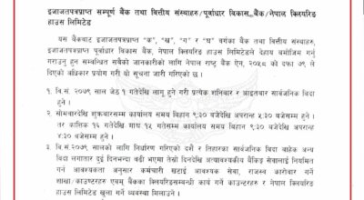 काठमाडौं, जेठ २ गते । अर्थ मन्त्रालयले आगामी आर्थिक बर्ष ०७९–८० को बजेट निर्माणमा सघाउ पुग्ने उद्देश्यले संचालन गरेको टोल फ्री नम्बर ११३८ बाट उत्साहजनक ढङ्गले सुझावहरु संकलन भएको जनाएको छ । देशभरका अधिकांश जिल्लाबाट सुझावहरु आएको भन्दै मन्त्रालयले अहिले यी सुझावहरूको अध्ययन गरेर आगामी आबको बजेटमा समावेश गर्न खोजिरहेको जनाएको छ । अर्थमन्त्री जनार्दन…