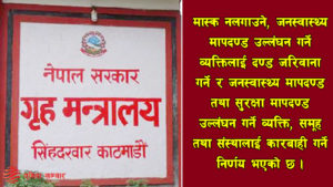 काठमाडौं, २७ साउन – नेपालमा कोरोना संक्रमण निरन्तर बढ्दो क्रममा छ। कोरोना संक्रमणकै कारण २४ घण्टायता थप दुई जनाको मृत्यु भएको छ। स्वास्थ्य मन्त्रालयका प्रवक्ता डा. जागेश्वर गौतमका अनुसार कोरोना संक्रमणबाट धनुषा र सिन्धुपाल्चोकका १–१ जनाको मृत्यु भएको हो। प्रादेशिक अस्पताल जनकपुरधाममा उपचाररत विदेह नगरपालिका–८ का ६० वर्षीय पुरुषको सोमबार राति मृत्यु भएको छ। क्षयरोग…
