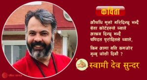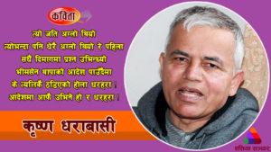 धरहरालाई बिम्ब बनाई कविता लेख्थेंर जागिरबाट साँझ घर फर्किदारत्नपार्कमा माइक्रो बस पर्खिदै गर्दापश्चिम फर्केर त्यसैलाई