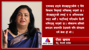 काठमाडौं, २ कात्तिक – नेपाली कांग्रेसकी प्रभावशाली नेतृ रीता खनालले पार्टी नेतृत्व रुपान्तरण गरेर आगामी