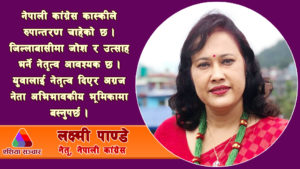 पोखरा, ६ भदौ – नेपाली कांग्रेस कास्की कोषाध्यक्ष लक्ष्मी पाण्डेले पार्टीको जिल्ला समितिमा अब पूर्णरुपमा