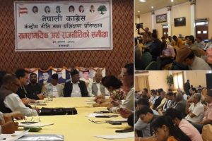काठमाडौं – नेपाली कांग्रेसको केन्द्रीय नीति तथा प्रशिक्षण प्रतिष्ठानले ‘समसामयिक अर्थ–राजनीतिको समीक्षा’ कार्यक्रम आयोजना गर्यो। काठमाडौंको