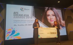 Asian Football Confederation Dream Asia Award 2018 Malaysia – Khusbu Oli, presented with the Asian